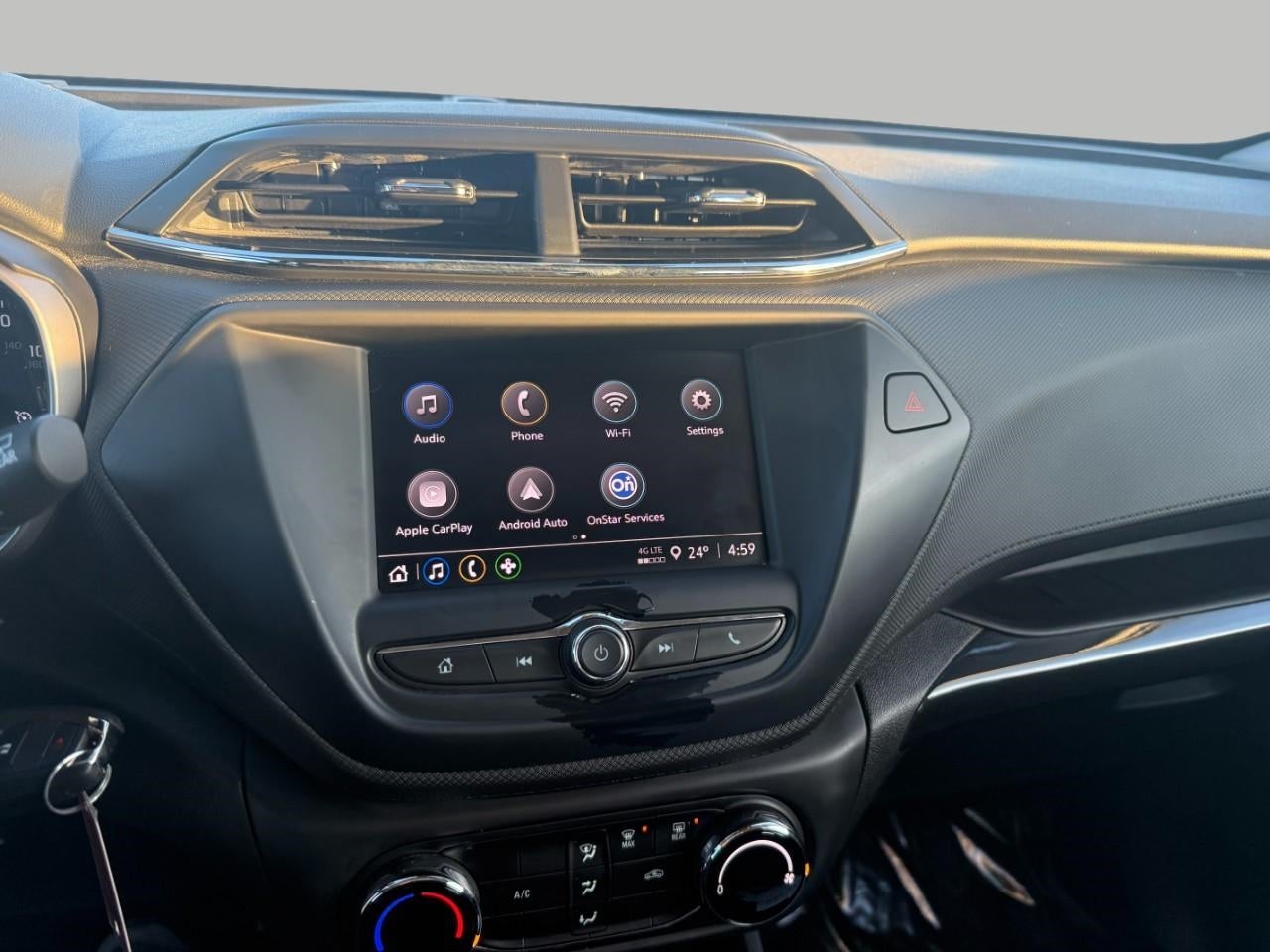 - Audio system, Chevrolet Infotainment 3 system 7" diagonal color touchscreen, AM/FM stereo. Additional features for compatible phones include: Bluetooth® audio streaming for 2 active devices, voice command pass-through to phone, Apple CarPlay and Android Auto capable.